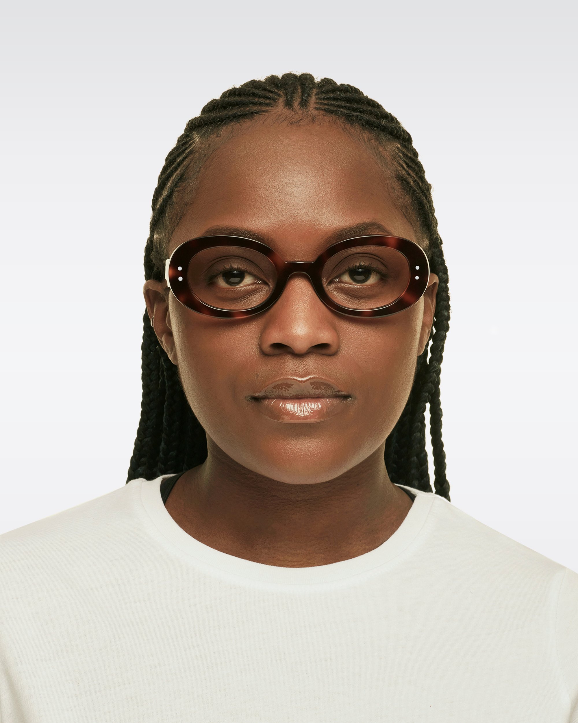 Sophisticated and energetic. A boldly oval silhouette that perches delicately upon the nose like a butterfly. Think a sportier Jackie Onassis or a dressed-up Kurt Cobain.